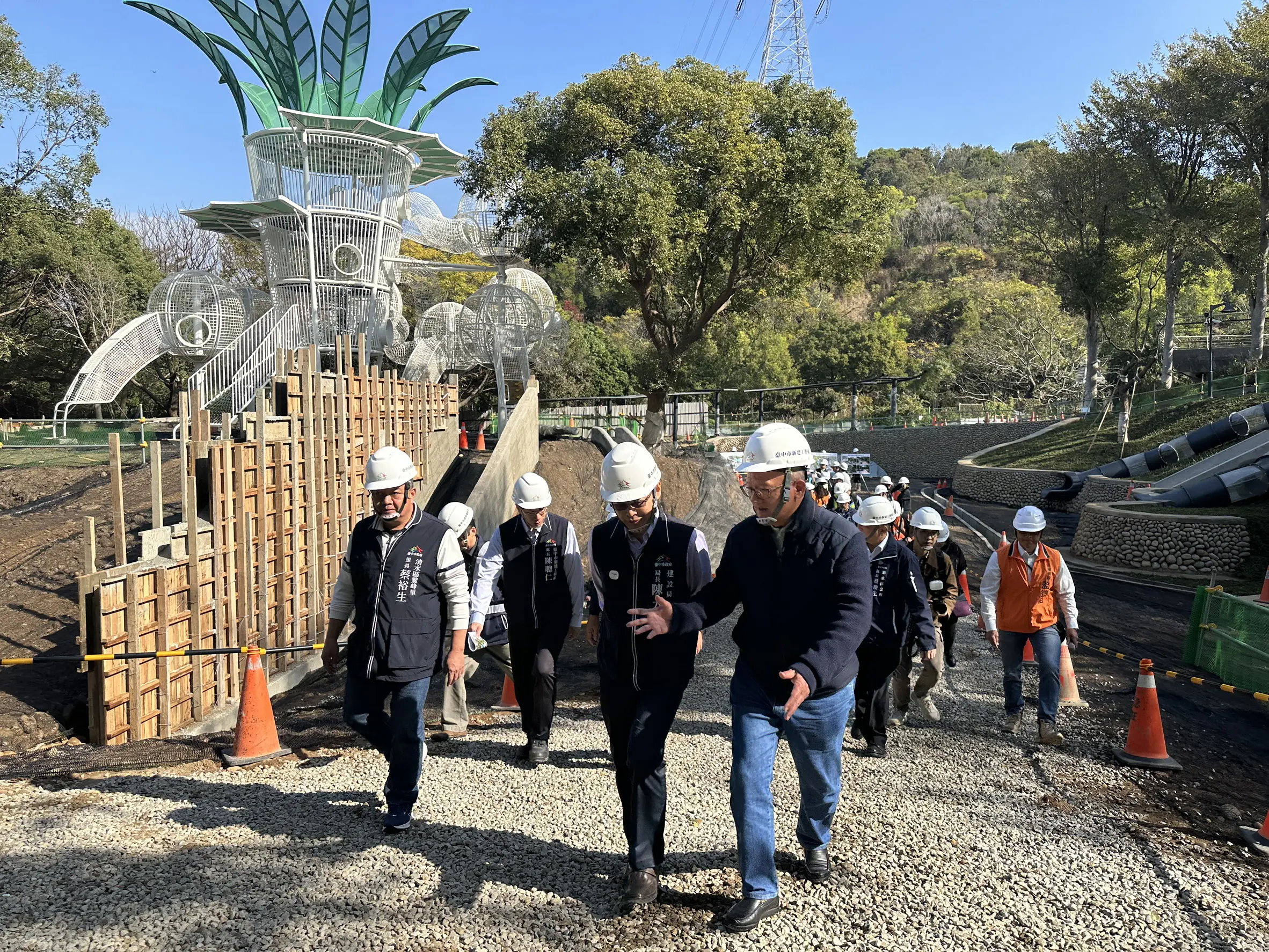 台中市長盧秀燕持續推動海線地區公共建設,打造具特色的親子休憩空間,市議會張清照議長也關心海線建設及鰲峰山特色公園發展;昨(15)日張議長與建設局長陳大田一同前往清水區鰲峰山「谷溜遊戲場」,實地掌握工程推動情形。市府投入7,625萬元打造該遊戲場,設置全國最多、共34道各式溜滑梯,將成為海線區域指標性親子遊憩場域,目前主要遊具大樹遊戲塔及水土保持工程均已接近完成,整體工程進度突破七成。此次視察除掌握工程進度外,也就後續施工細節與安全管理進行交流,展現市府與地方攜手推動公共建設的成果。