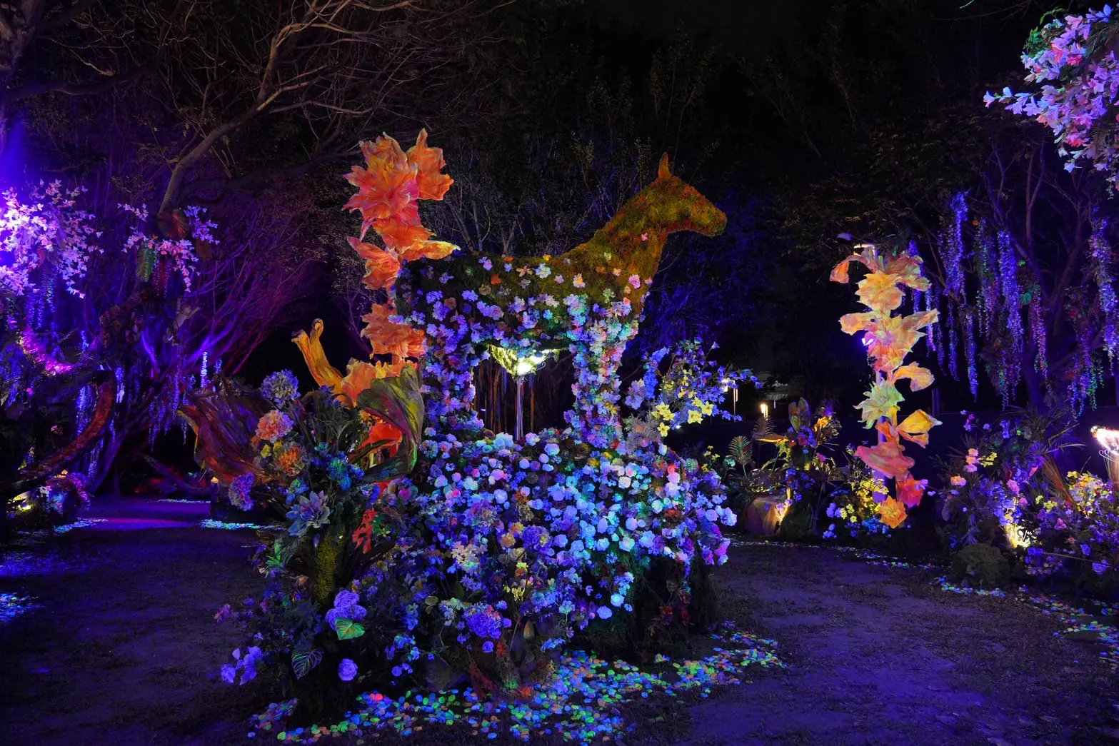 建設局補充,「驚蟄界」由曾打造高人氣燈區「龍之異次元」的策展團隊再度操刀,以「春雷喚醒大地、萬物重新萌生」為核心概念,融合工藝、花藝、多媒材裝置與聲光特效,形塑高度沉浸式的雨林場景,並呼應馬年意象,注入動感與能量,帶領民眾在行走燈區時,彷彿親身感受春天甦醒、生命流動的節奏。