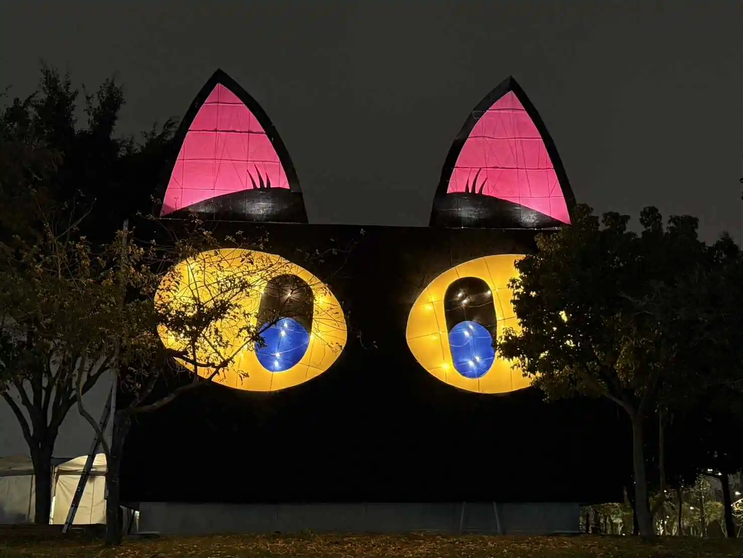 農業局表示,「動物夢世界」燈區規劃許多巨型奇幻風格燈景,值得市民朋友們親身體驗,從古埃及女神巴斯特開啟夢境通道,到「消逝之塔」提醒著快要消失在這世界的動物們;「貓眼凝視」巨大黑貓凝視著人們如何對待動物;「星際救援」來自火星的狗狗來福從飛碟降落;「地下密會」地面冒出鼴鼠與穿山甲;「菇菌密林」巨大的菇勇者展示有機耕作的成果,「星幕共伴」仰望璀璨星空;「希望迴環」神秘又溫柔的庇護所;「希望彩虹谷」飛天小馬在彩虹溜滑梯上遊玩;「幻蝶瀑布」蝶影紛飛的光瀑,最後抵達旅程的終點「擁抱明日」,相信只要願意守護,明天就會更好。