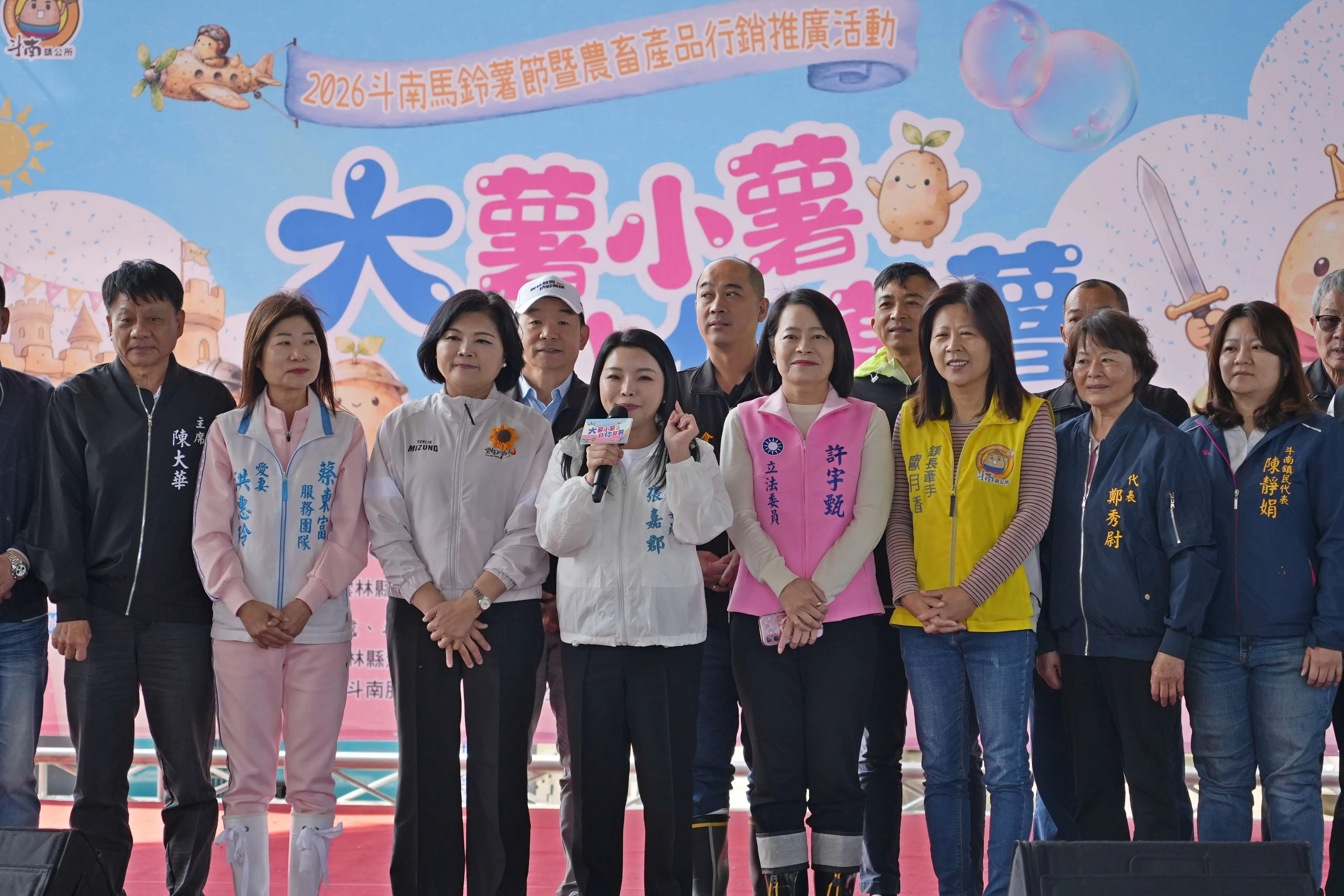 今天活動包括縣長張麗善、立法委員張嘉郡、許宇甄、斗南鎮長沈暉勛、議員蔡東富夫人洪惠玲及多位地方民意代表共同參與,與民眾一起體驗挖馬鈴薯、品嚐馬鈴薯料理與手作DIY,讓民眾在歡樂氣氛中感受斗南馬鈴薯的魅力。
