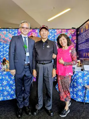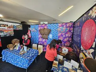 紐西蘭台灣僑界年度盛事「2026紐西蘭台灣日」於3月6日起一連三天在奧克蘭市中心Victory Convention Centre熱鬧登場。活動現場除戶外琳瑯滿目的台灣美食攤位吸引大批民眾外,室內文化展區同樣精彩,其中由紐西蘭客家同鄉會策劃的客家文化展區位於場館入口最醒目的位置,參觀民眾一踏入會場即被繽紛亮麗的客家花布所吸引,紛紛駐足欣賞並深入了解台灣客家文化的歷史與生活樣貌。
