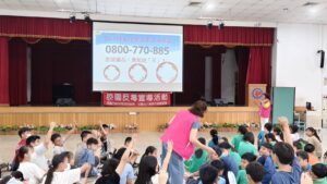 李幸洳講師指出,現今新興毒品常以糖果、餅乾等零食外觀包裝,企圖引誘孩童嘗試。她提醒同學們務必要保持警覺,勇敢說「不」,才能遠離傷害。宣導中,她以有獎徵答方式帶領學生參與,孩子們踴躍舉手搶答,現場氣氛熱絡,得獎同學更是笑逐顏開。