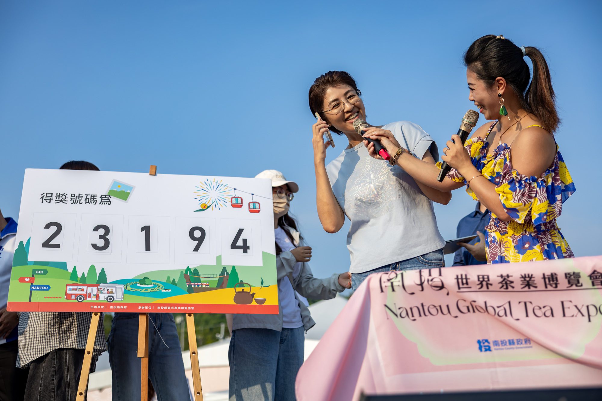 茶博閉幕,許縣長等人進行「封茶儀式」外,同時舉辦南投好康月抽獎,彰化社頭石姓民眾,10月10日到集集住宿花了2 ,800多元,抽中Gogoro機車,許縣長透過手機向得主道賀,並邀請明年參加茶博會;接到許縣長電話,石姓名眾大感意外,還不禁問得獎「真的?假的?」