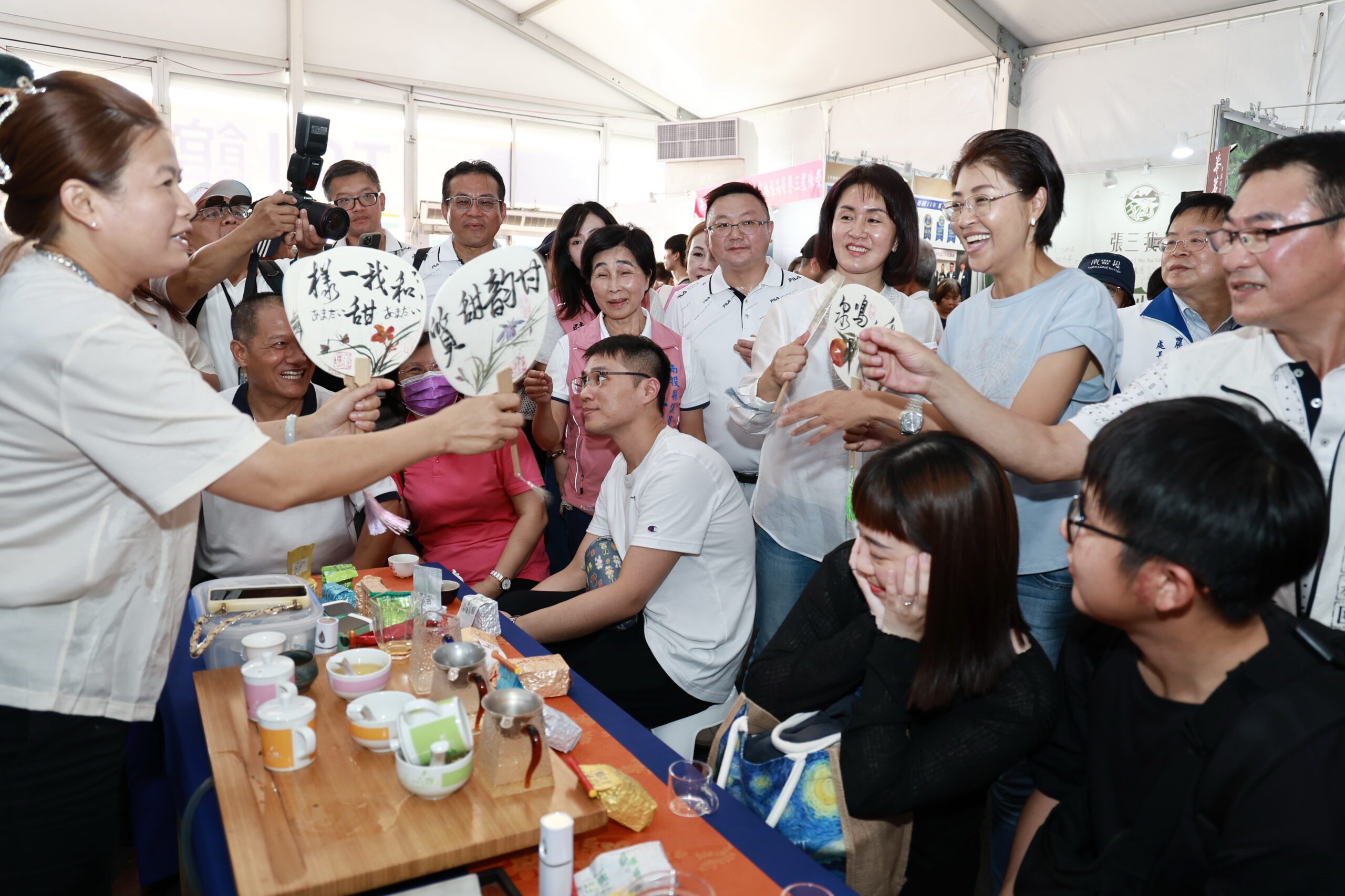 茶博最後一天,苗栗縣議會副議長張淑芬及苗栗縣工業會理事長黃清譽等人參加活動,許縣長盡地主之誼,請他們到茶博會現場喝好茶,體驗茶文化。許縣長表示,苗栗有出名的東方美人茶,未來南投和苗栗或許也可以合作,彼此學習。