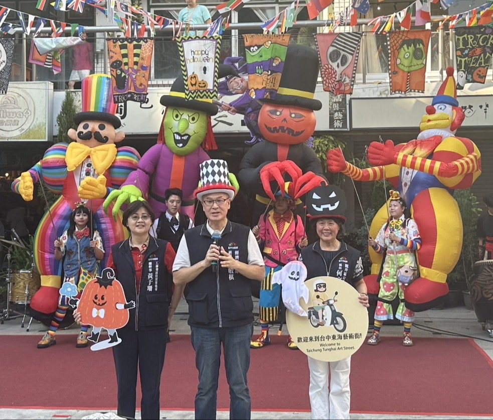 台中市政府經濟發展局於昨(18)日與東海藝術街商圈合作在科比意廣場舉辦「第十二屆東海國際藝術節-搞怪嘉年華:東海藝術街萬聖趴」活動,現場人潮滿滿,上百人化身吸血鬼、超級英雄、搞怪小惡魔齊聚一堂,還有音樂演出、市集闖關、嘉年華遊行、團隊闖關討糖等豐富內容,邀請民眾與好友、親子一同搞怪登場,共同感受藝術街滿滿的節慶與創意氛圍。