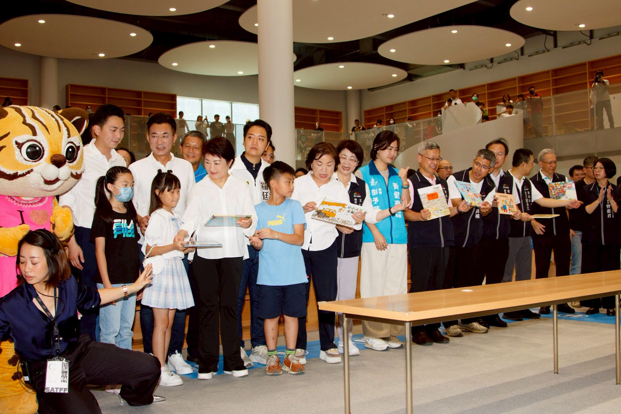 今日上架活動現場有石虎家族與人氣角色貓貓蟲咖波氣偶同樂,書香滿溢、笑聲不斷。包括市長盧秀燕、立法院副院長江啟臣、立法委員楊瓊瓔、廖偉翔、羅廷瑋、市議員劉士州、文化局長陳佳君、建設局長陳大田、新聞局長欒治誼、文化局副局長施純福、建設局副局長陳永欣、教育局副局長郭明洲、新建工程處長陳聰仁、台中市立圖書館長曾惠君、台中市立美術館長賴依欣、西屯區公所區長鄭錫禧、台中市工商發展投資策進會幹事顏建程、西屯區漢口國中校長羅國俊、清水區大楊國小校長陳盈達、南屯區文山國小校長楊敏芸、北屯區文心國小校長柯志明、北屯區四張犁國中校長商永齡、西屯區東海國小校長林筆藝等嘉賓皆到現場;立法委員黃健豪、市議員黃馨慧、黃守達,南屯區上石國小及台中市閱讀教育輔導團也都派代表共襄盛舉。