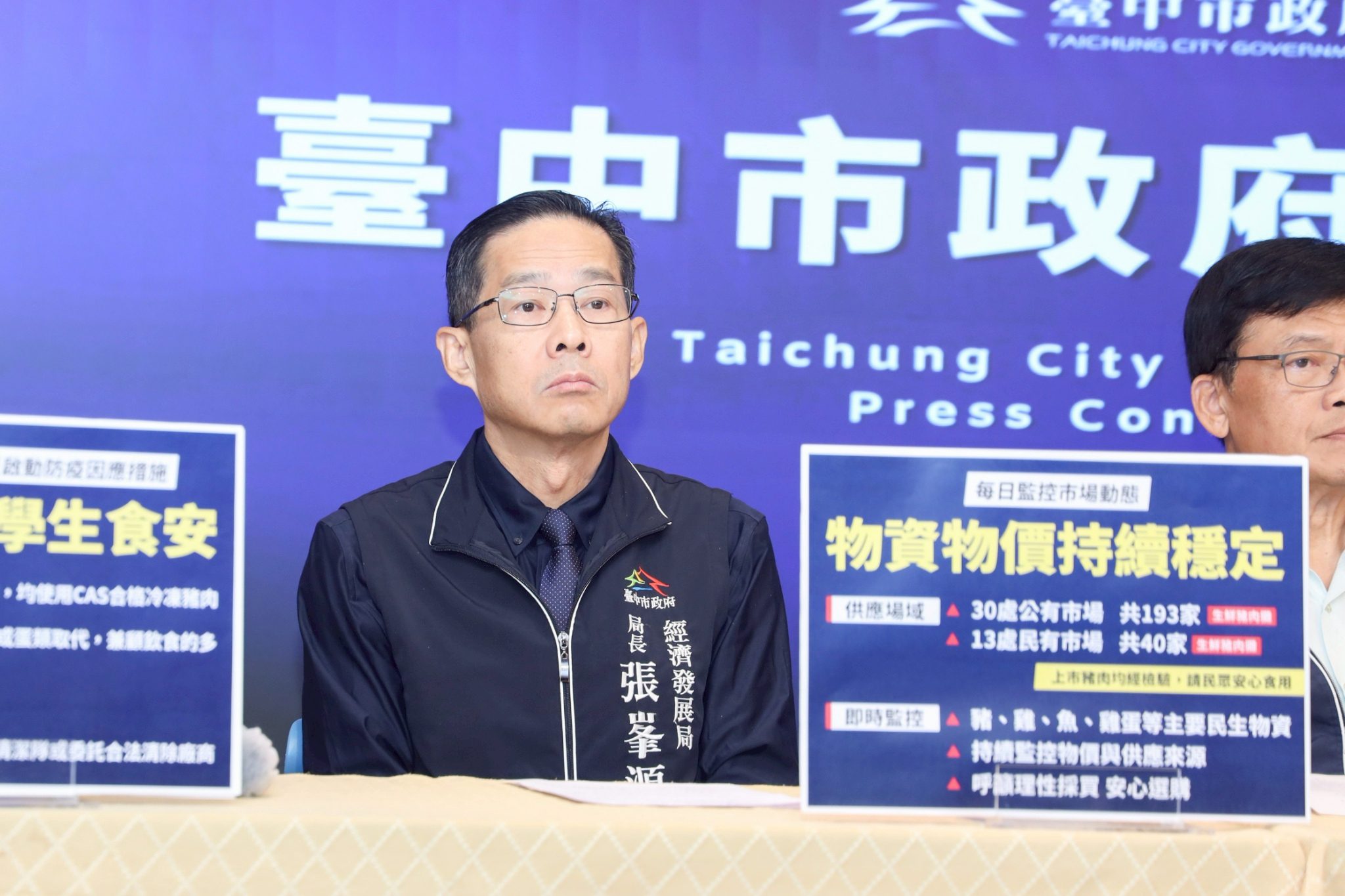 台中市首例疑似非洲豬瘟案例,台中市政府昨(22)日由市長盧秀燕二次召開緊急應變會議,今(23)日由副市長黃國榮再次召開記者會,針對中市府農業局、經濟發展局、教育局、衛生局、環境保護局5局處因應作為向民眾說明,以「嚴格稽查,有查必報」原則把關豬隻,降低傳染病散播,共同守護市民食安。