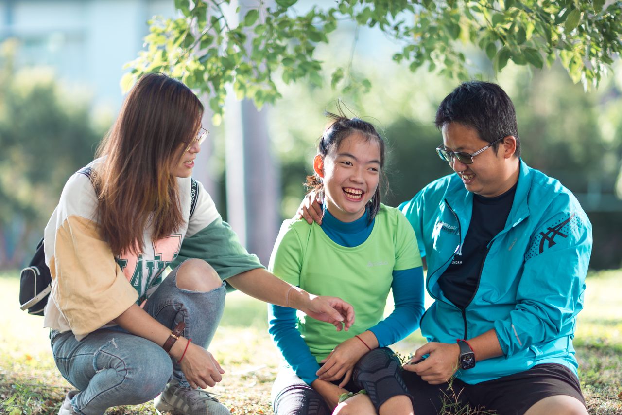 《2025無限影展》特邀《台灣超人》為開幕片。「腦麻小太陽」姚宥米(中)與其教練父親姚宗元(右)。圖片提供:公視