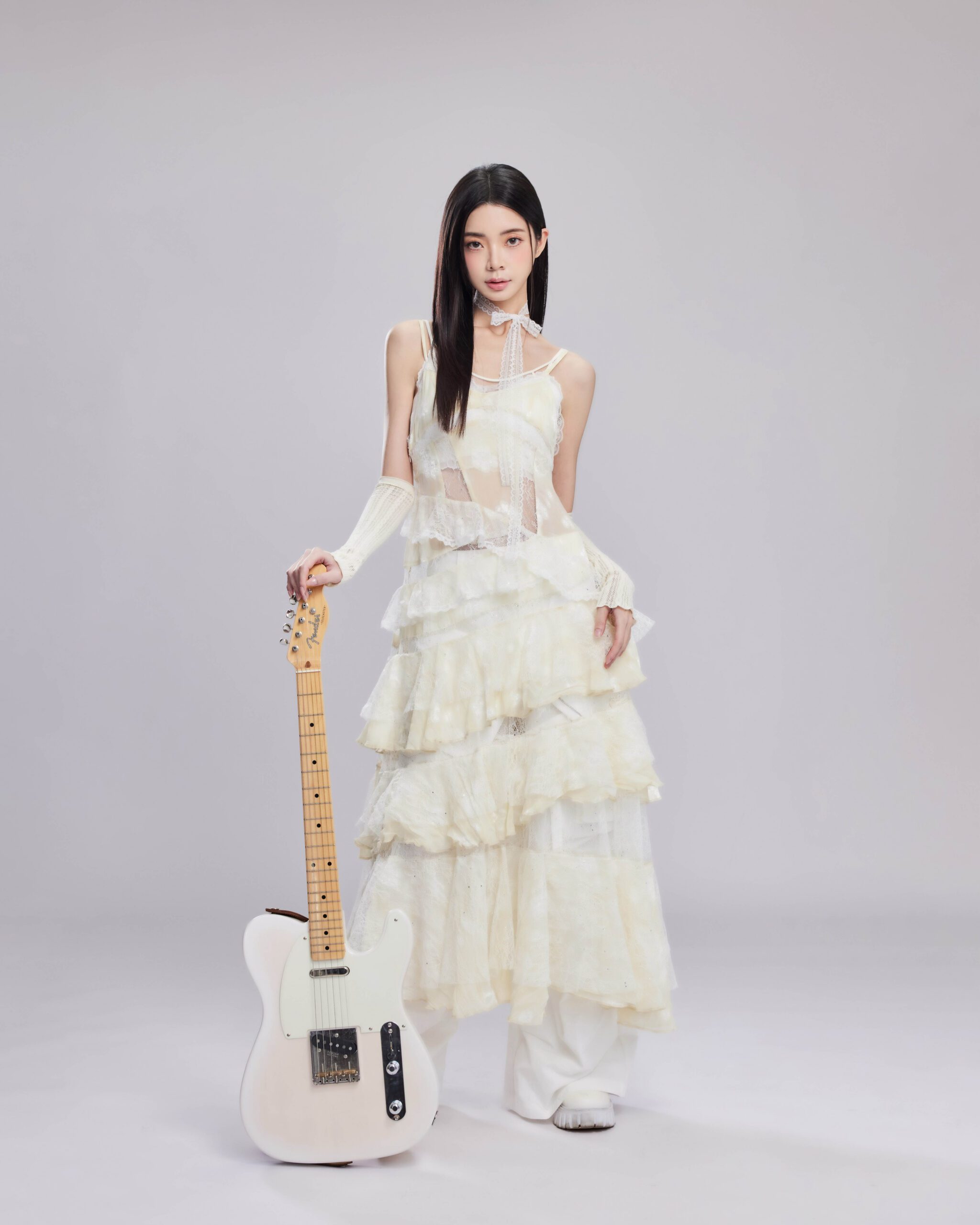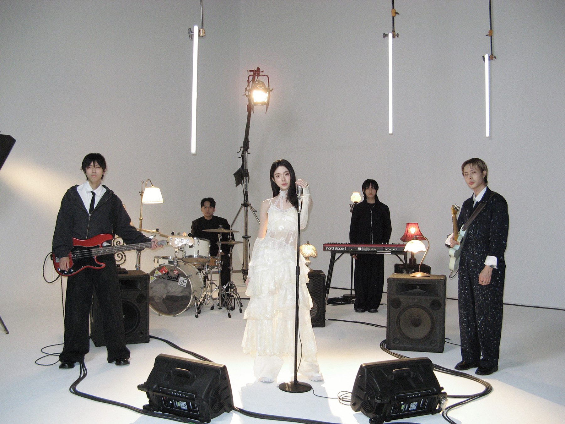 〈養天使的方法〉MV畫面則仙氣滿點!annbae裴安身穿白色蕾絲洋裝、手持電吉他,在柔光與搖滾聲浪中展現反差魅力。MV劇情描述,被霸凌的少年在孤單黑暗中遇見人形小天使裴安,她用沉默的陪伴帶他走出陰影,最後兩人手牽手奔向夕陽海邊,象徵「被理解」與「被接住」的力量。
