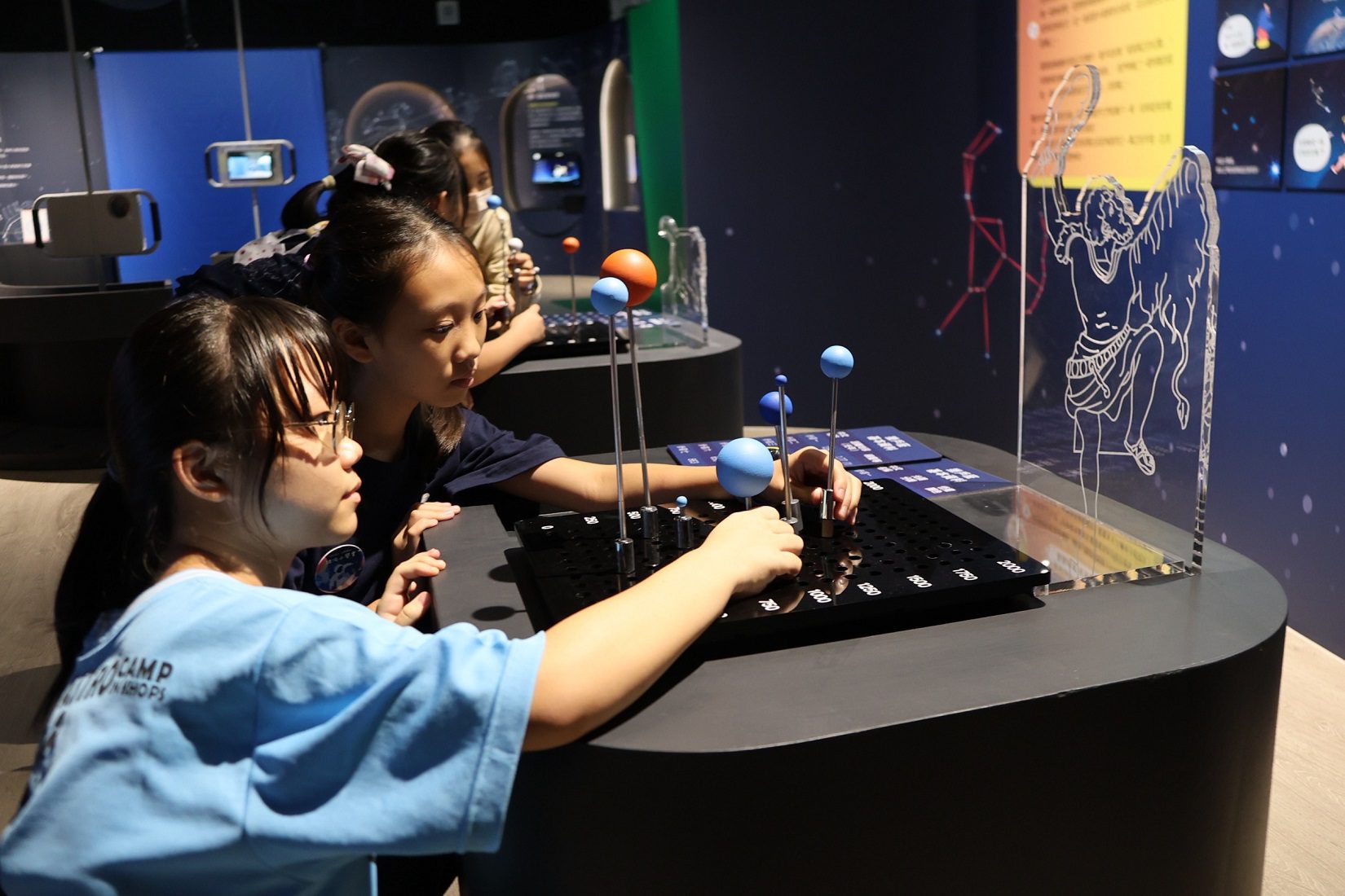 另一受學生歡迎的是「宇宙知識跳跳碰」答題區,結合O、X遊戲形式,透過趣味競賽測試天文知識,不只增添學習刺激感,也讓孩子在遊戲中吸收新知。而「星座快照」區則設置藍幕與綠幕背景,只要擺好姿勢、按下拍攝鍵,就能化身星座主角,留下獨一無二的宇宙紀念照。展廳處處可見學生好奇的笑聲與驚呼,彷彿一場小型太空嘉年華。
