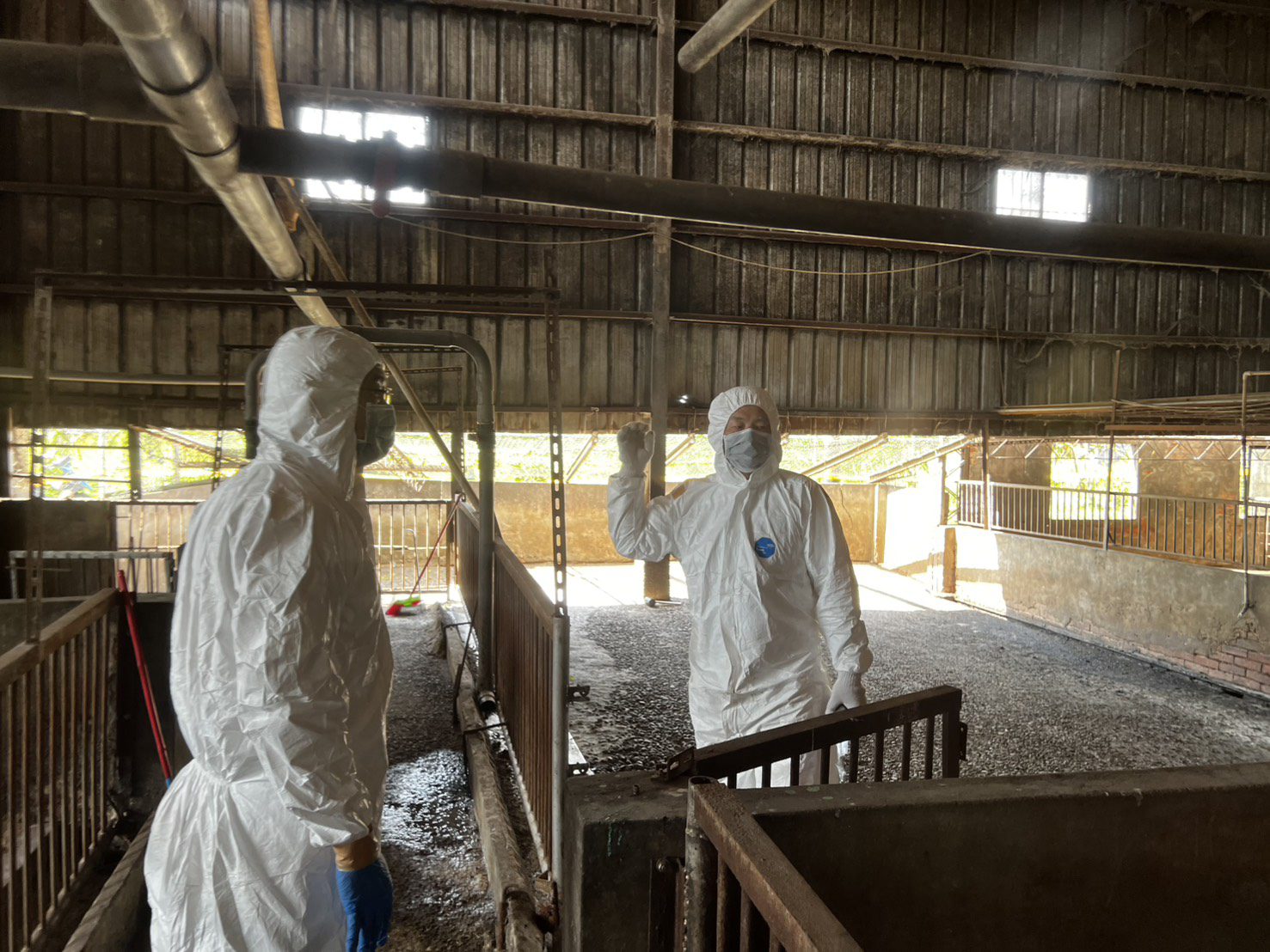 農業局表示,中央原本規劃出動化學兵清消,但案場清潔狀況非常不理想,因此昨晚緊急向國防部調度國軍進駐清潔,現場堆積大量豬糞與汙泥,惡臭瀰漫、清理不易,決定請國防部調派國軍協助清消工作。