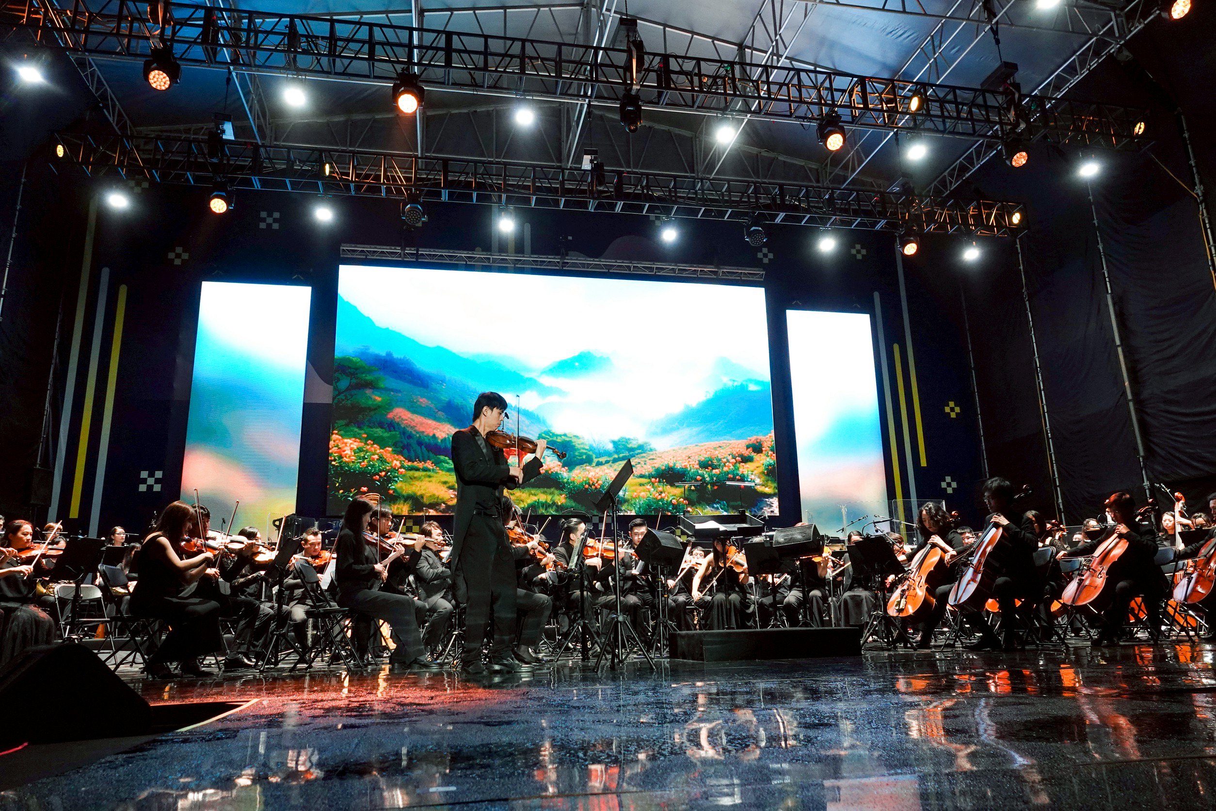 本次音樂會貴賓雲集包括台灣大哥大林之晨總經理、交通部觀光署日月潭國家風景區管理處湯維堯副處長、魚池鄉公所劉啟帆鄉長、魚池鄉水社村謝明達村長以及日月潭觀光圈聯盟多位理事長等人,共同與民眾共享盛會,舞台演出由準歌后接班人-艾薇、實力唱將-卓義峰輪番登場,搭配由江靖波指揮的樂興之時管絃樂團,演繹〈開門見山〉、〈Golden〉、〈讓我留在你身邊〉等多首熱門作品,還有特別嘉賓金曲歌王葛西瓦以及最強應援團Fubon Angels與應援團長Travis,帶來熱血體育組曲包含〈Go Stronger〉、〈藍色狂潮〉等應援曲,用32撞點燃全場能量,重現屬於台灣運動的團結榮耀!
